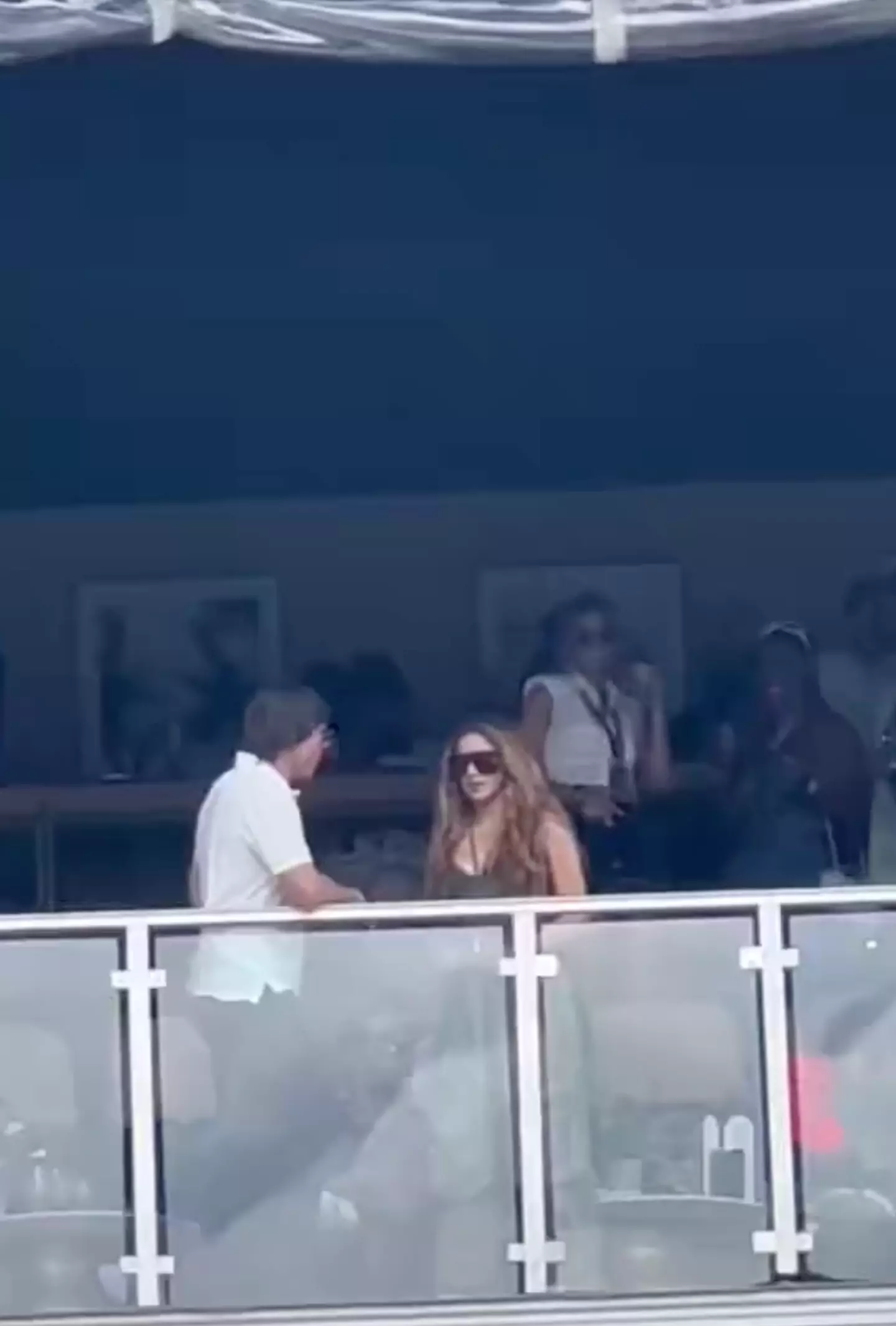 Footage shared online showed the 60-year-old actor and the 'Hips Don’t Lie' singer chatting while her young boy, believed to be her nine-year-old son Milan, jumped around in the background.