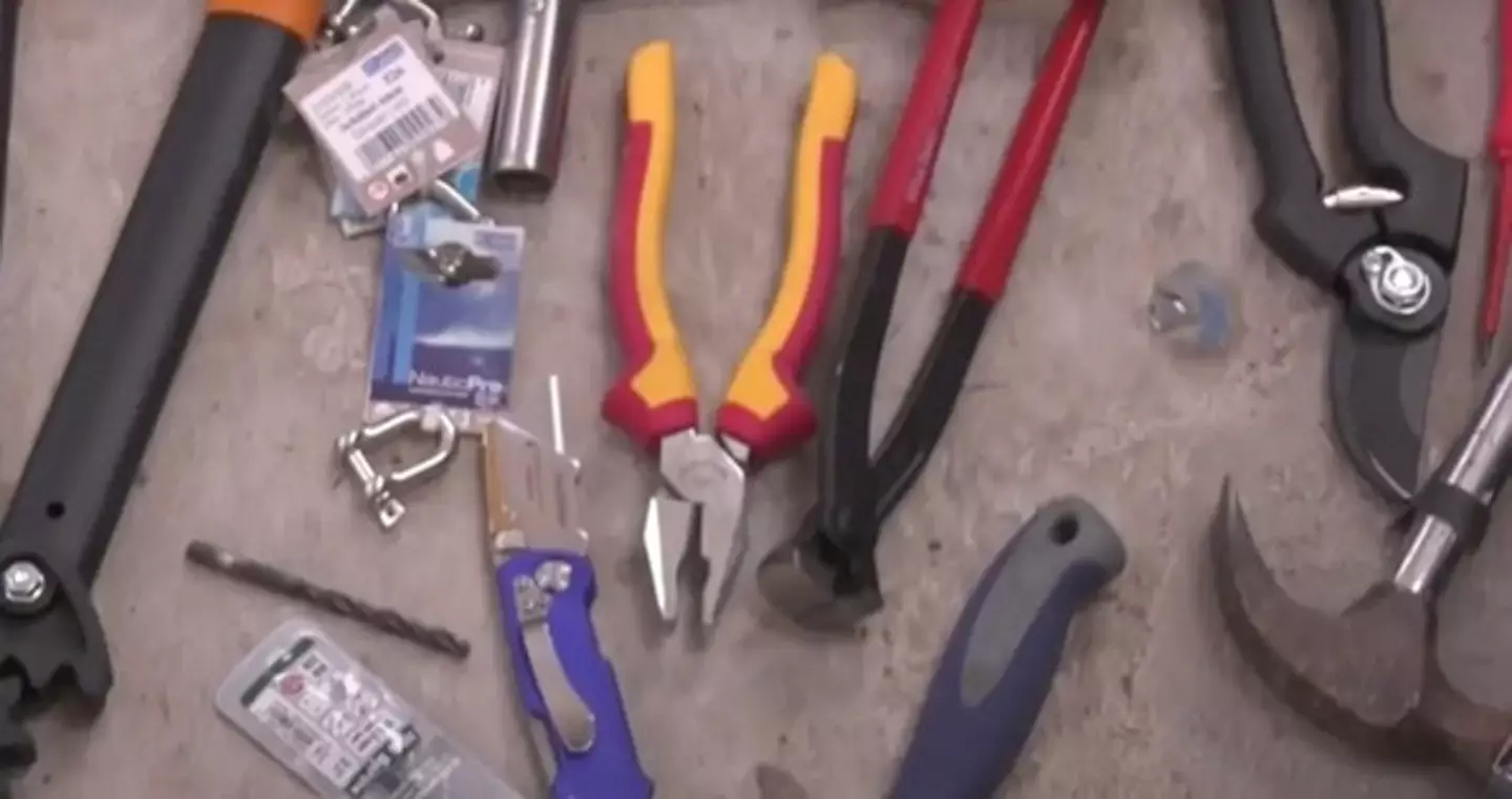 Police also found a number of tools inside the containers, including pliers, saws and scalps, aswell as a bag that had police uniforms and bulletproof vests inside.