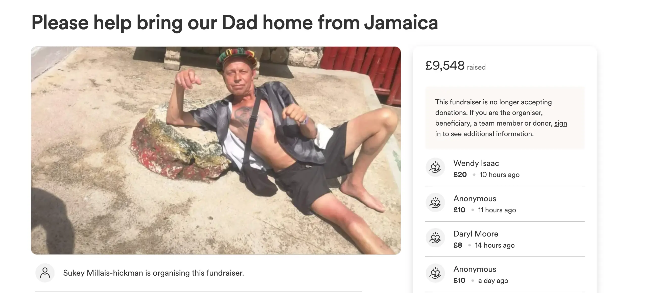 “We're hoping by doing this we could try to raise as much money as we can to get him home so that we, as a family, get to say our goodbyes”.