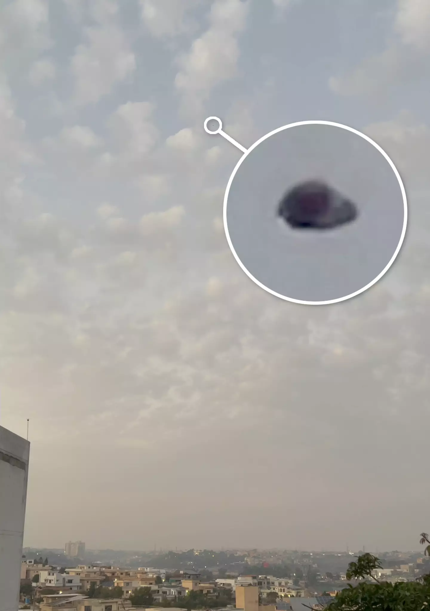 In the footage, the shape can be seen hanging without moving over Islamabad’s DHA 1 district.