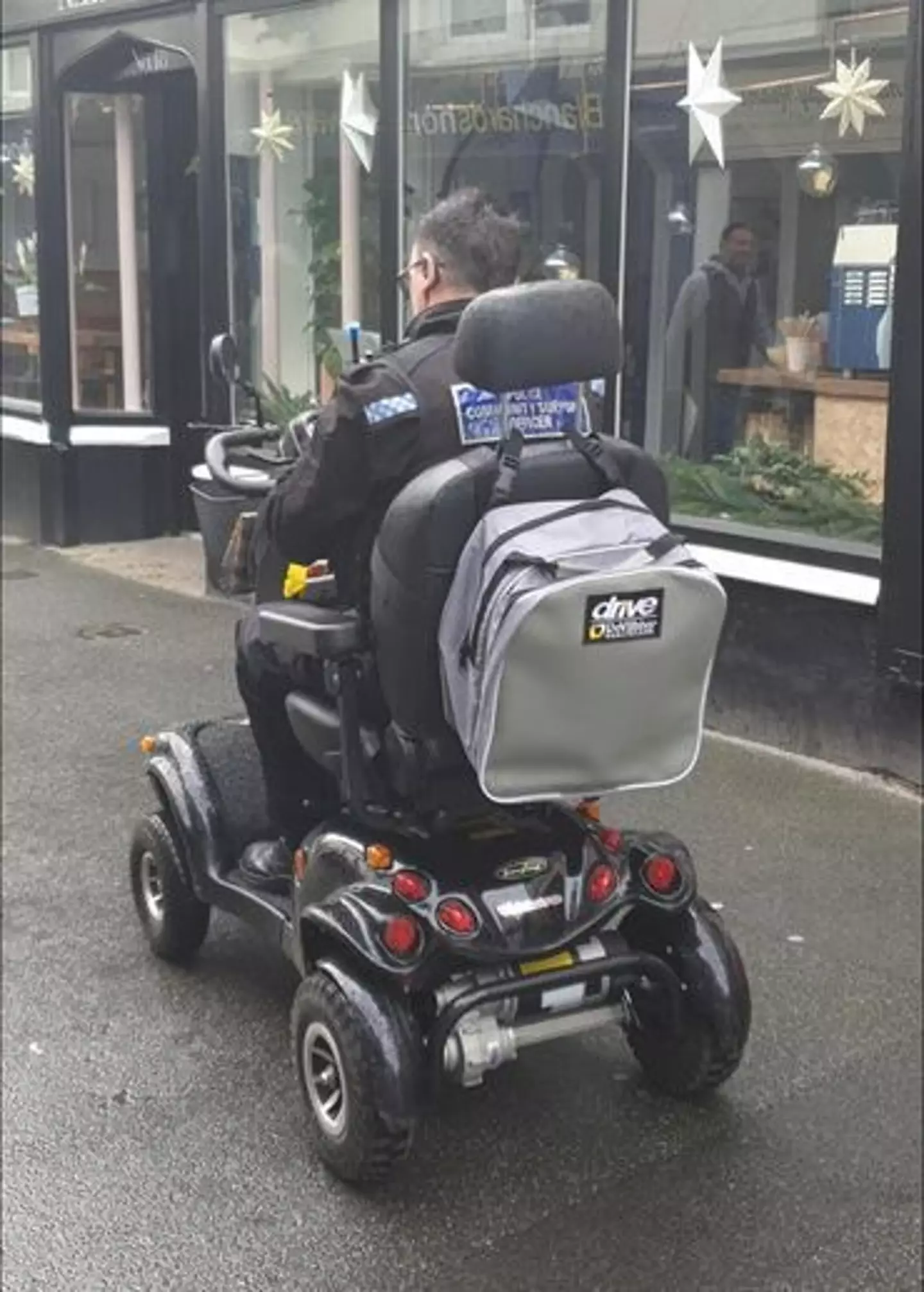 A post on Bideford Police's Facebook page said: "Residents of Bideford may have seen this slightly unusual sight today! And while we are an equal opportunity employer, no, we currently don’t have any plans to launch mobility scooter patrols.
