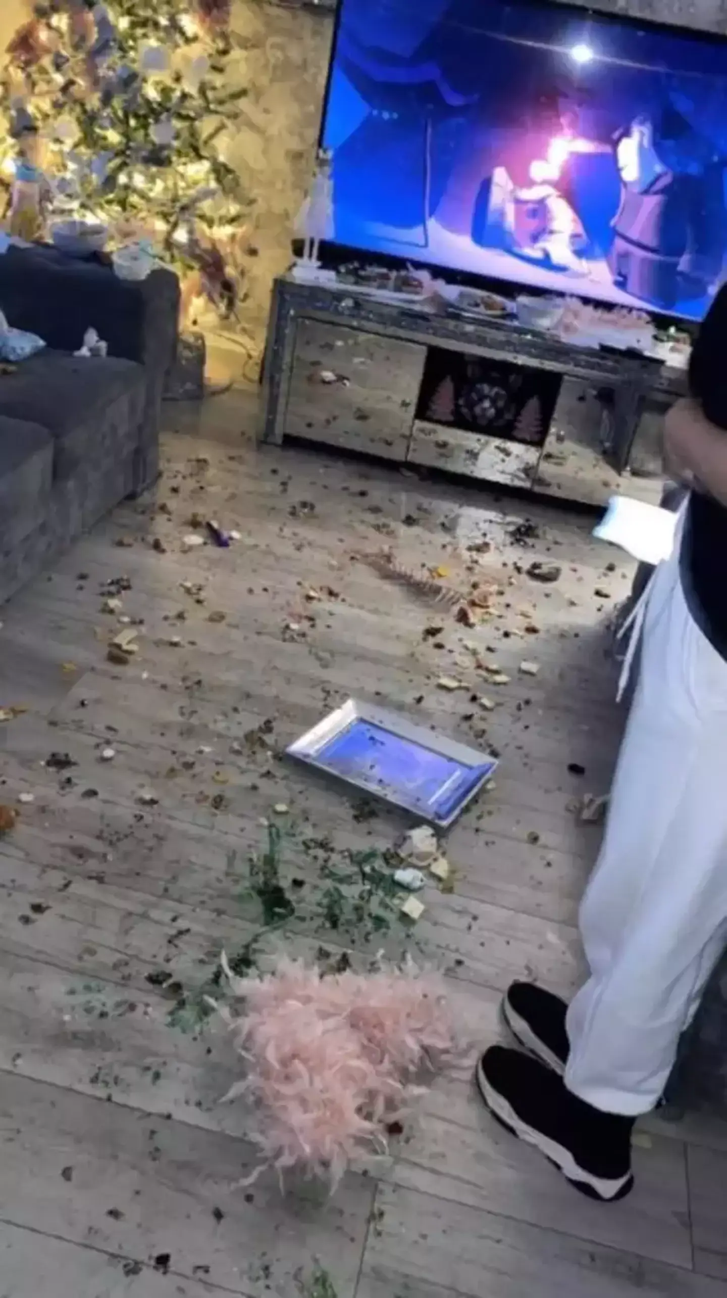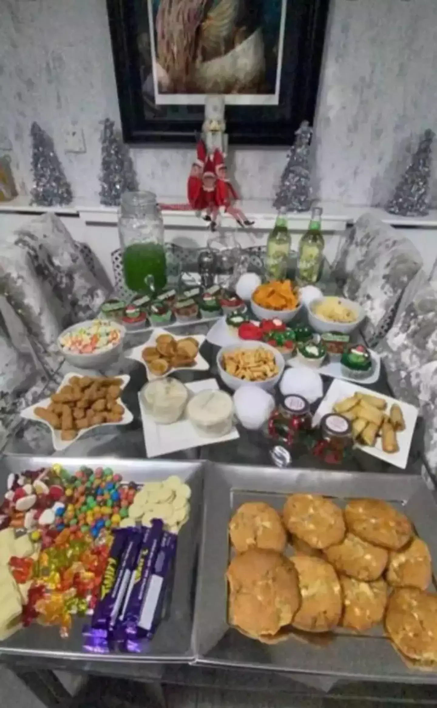 However, she claims the Grinch turned up and destroyed her house, pouring juice and washing liquid all over the place and smashing up eggs and party food.