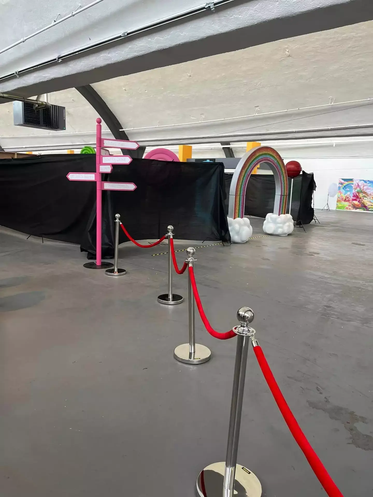 According to images posted online, there were only a few Wonka-themed props, along with a small bouncy castle.
