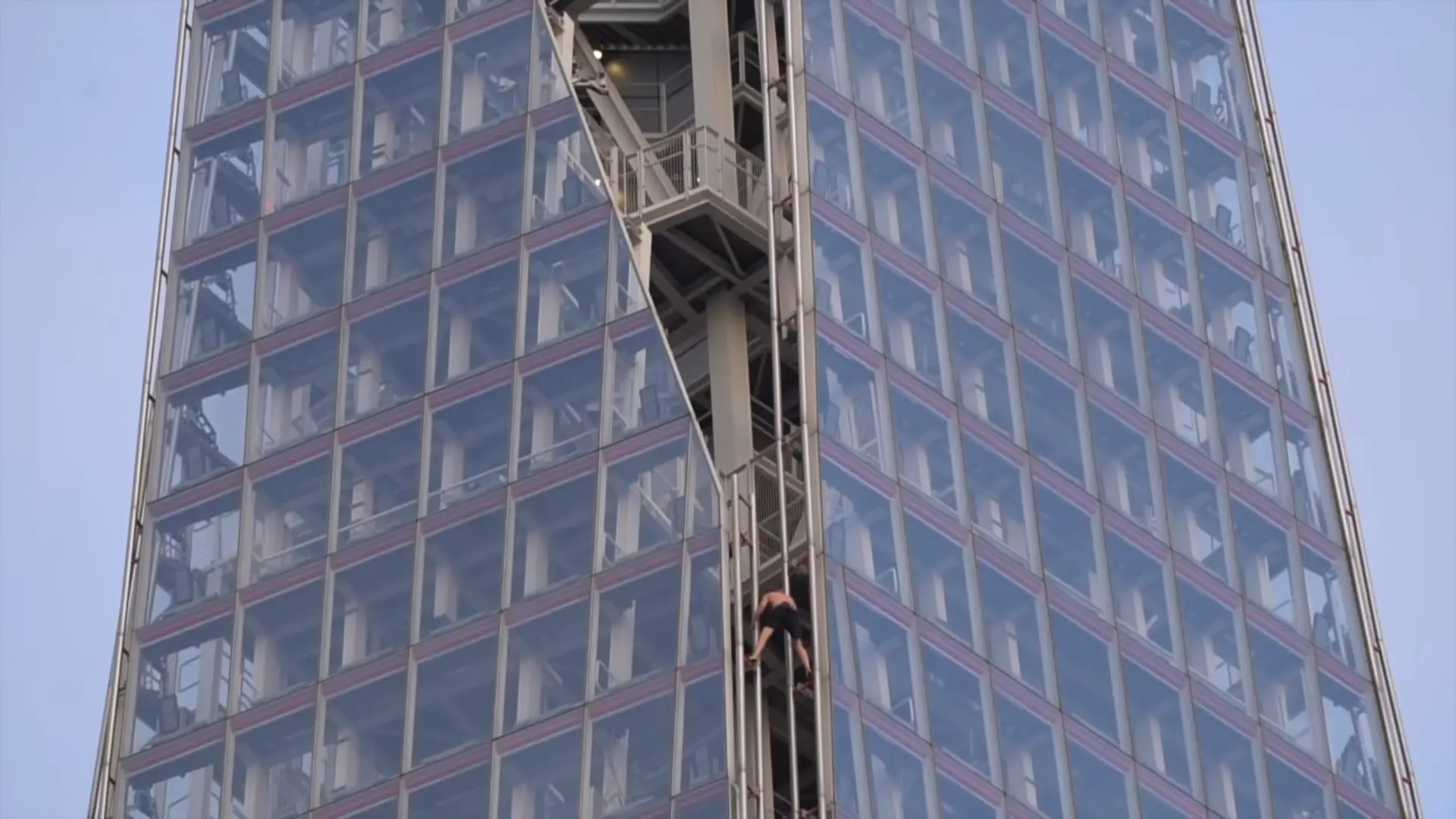Upon his arrival at his final destination, the viewing platform, which is some 243 metres above the streets below, he was greeted by the police. He offered them his wrists to be cuffed, but was instead helped over the edge and eventually let go.