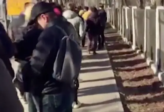 Long lines of people queuing on Ukraine's streets to give blood following the president's speech were captured by Channel 4.