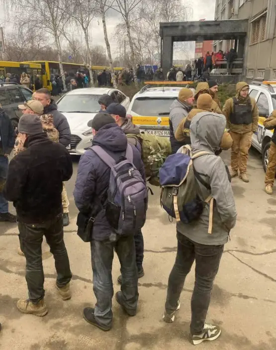 Images from local and international news organisations on the ground show men queuing up around official buildings to sign up for the fight against Putin's army.