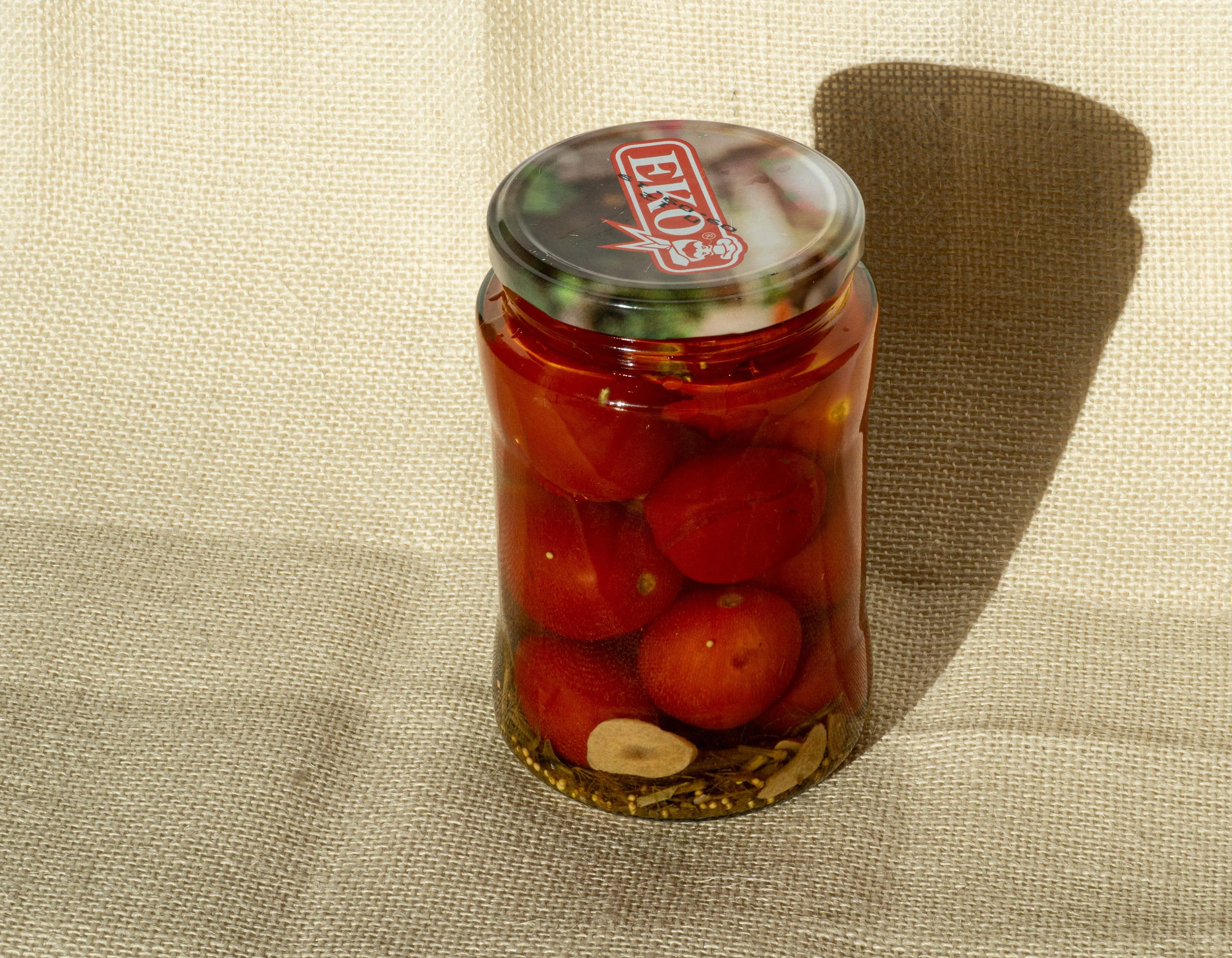 Rather than rush into the house to find something suitable to throw, she grabbed the closest thing to her - a jar of tomatoes.