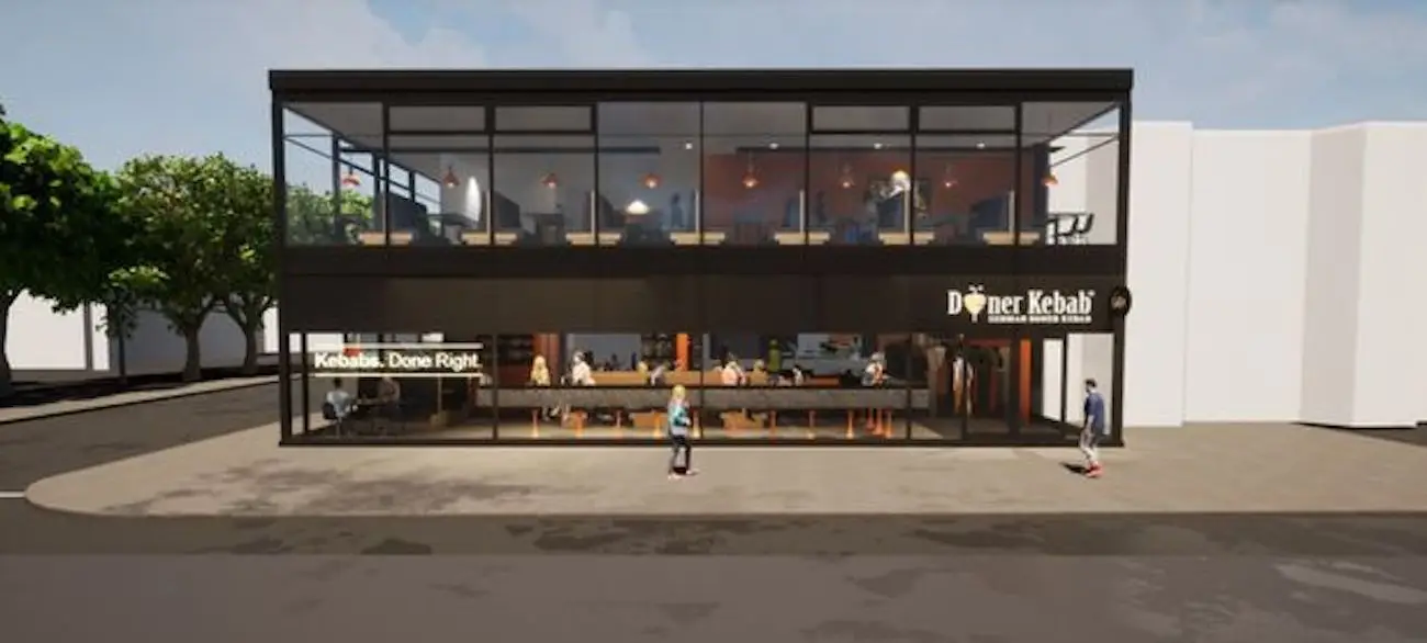 As shown in the images, there are two logos displayed on the front of the building that read 'Kebabs Done Right' and 'German Doner Kebab'.