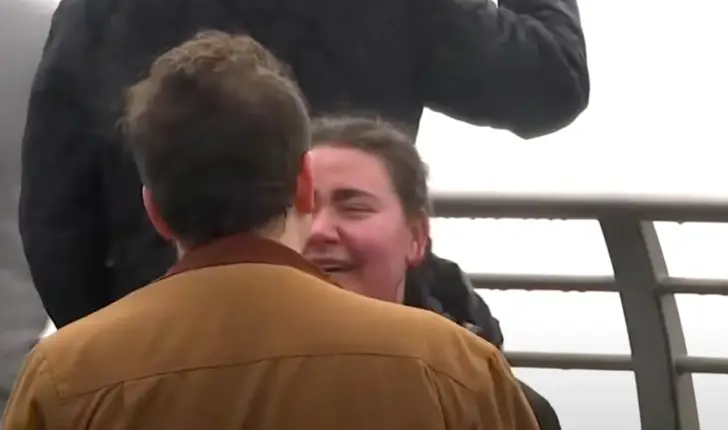 CBC were filming the whole thing and as soon as it got light again, the cameras picked up a brave man who dropped down on one knee to ask the all important question.