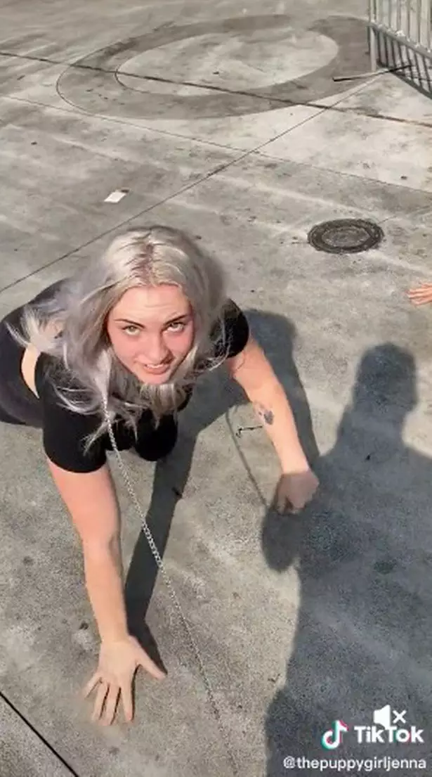 The clip that's gone viral on Jenna's TikTok though is a whole other animal. In the video, which has been viewed more than 9.5 million times, Jenna crawls on the floor with a leash tied around her neck.