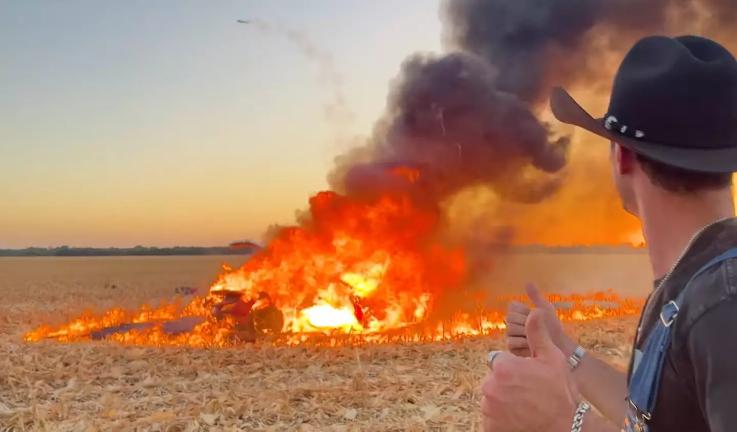 "Well, uh, there goes half a million dollars. I guess, uh, don't drive in a cornfield. I always wanted to have a little bit of fun with that car."