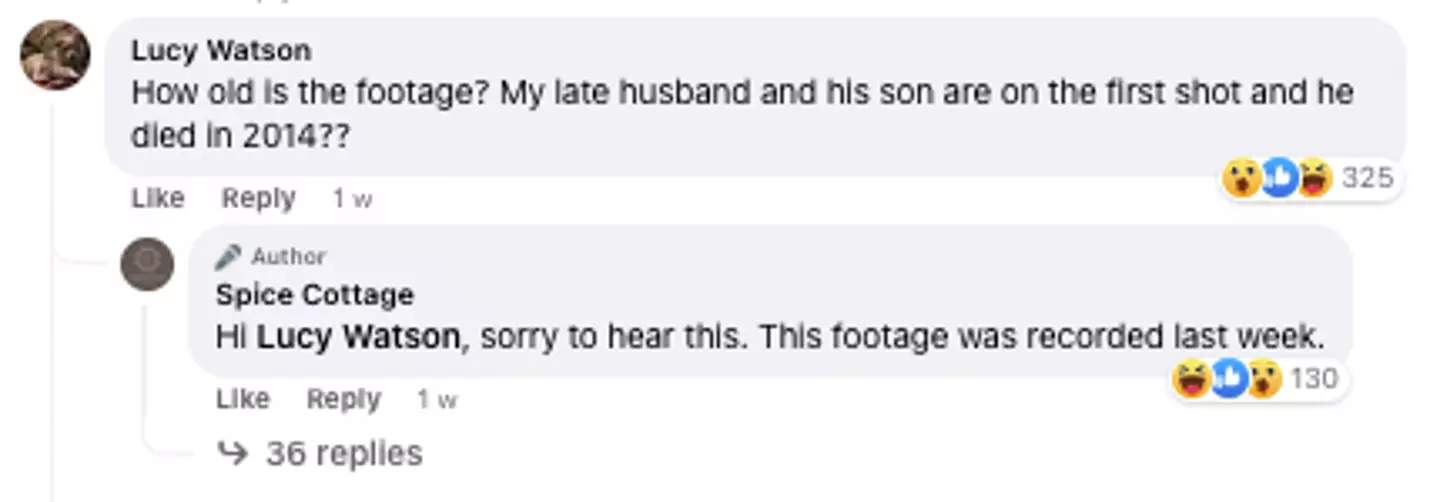 The video, shared on Facebook by the restaurant, has left many scratching their heads after Watson commented: "How old is the footage? My late husband and his son were on the first shot and he died in 2014?"