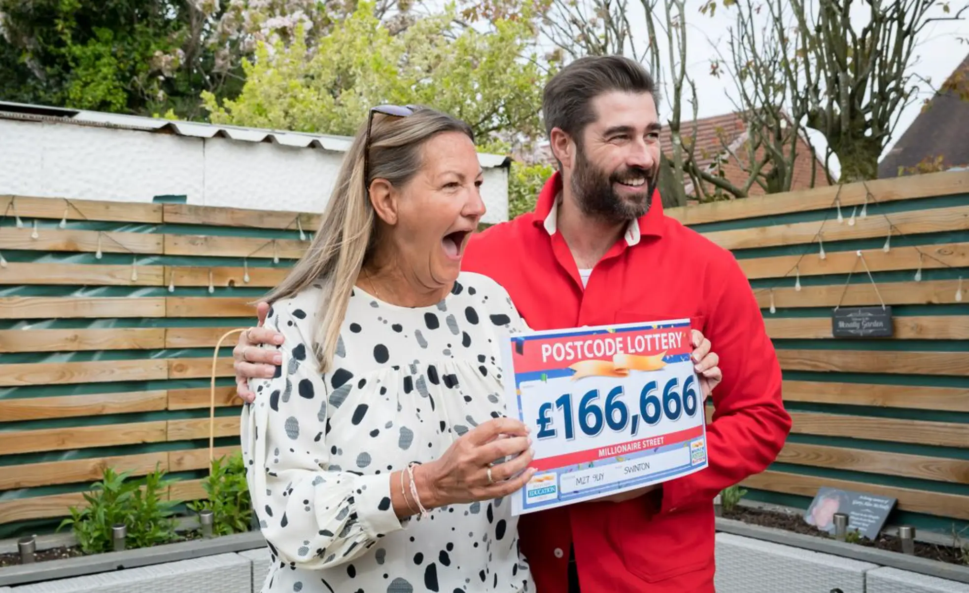 Following his tragic death, mum-of-three Lesley, from Greater Manchester, continued to play the People’s Postcode Lottery and has now won the whopping cash amount as part of the first ever Millionaire Street prize.