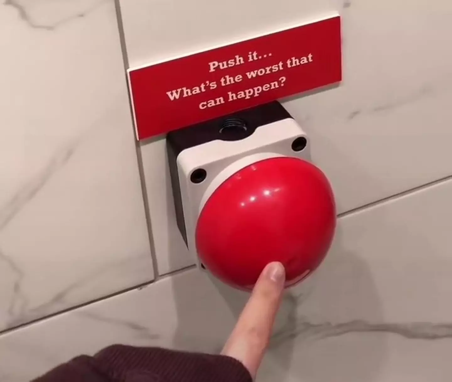 "I just saw a giant button that questioned 'what's the worst that can happen?', and that's like a red rag to a bull, so I thought I'd find out. As soon as I saw it I had to press it.