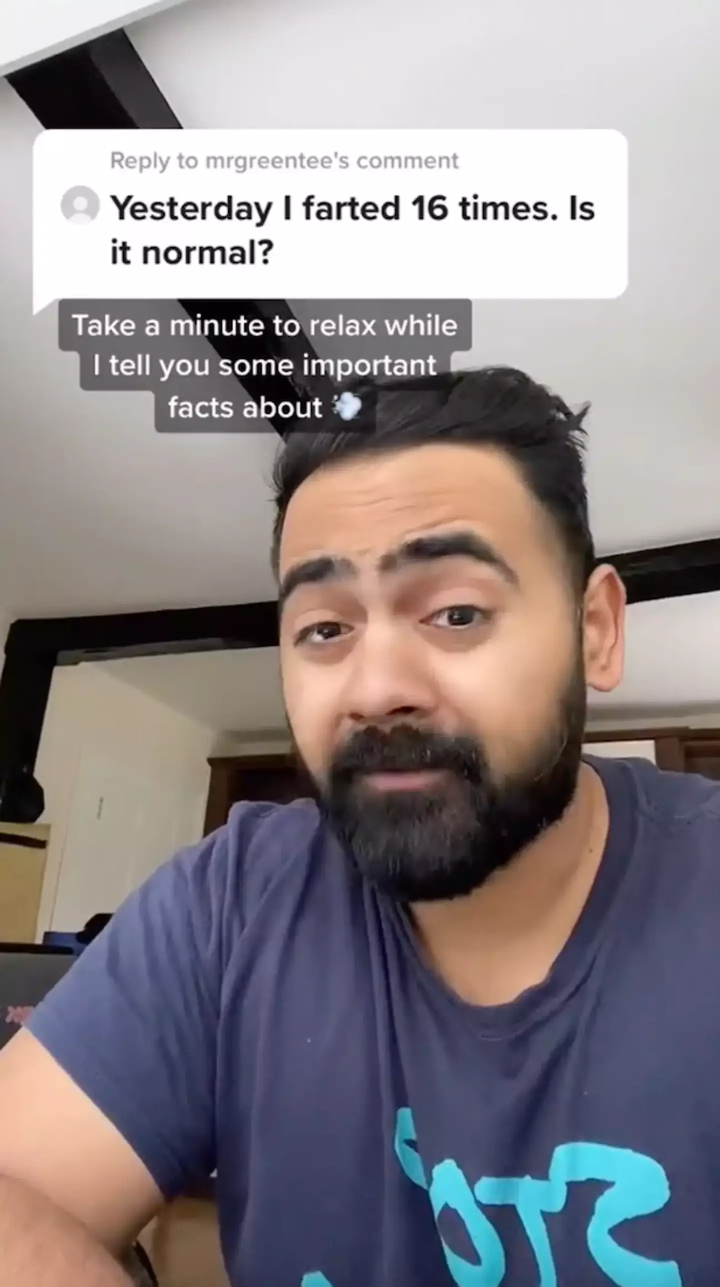 Dr Raj (@dr.karanr) says that, on average, people fart 14 times a day, and 'if someone tells you they don't [fart], they are lying'.