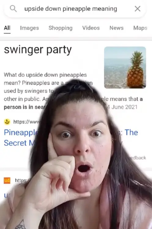 In a video recently posted on her channel, she explained that she was horrified when she found out that the 'upside down' pineapple, which is what it becomes when she moves her arm, is a signal for swingers.