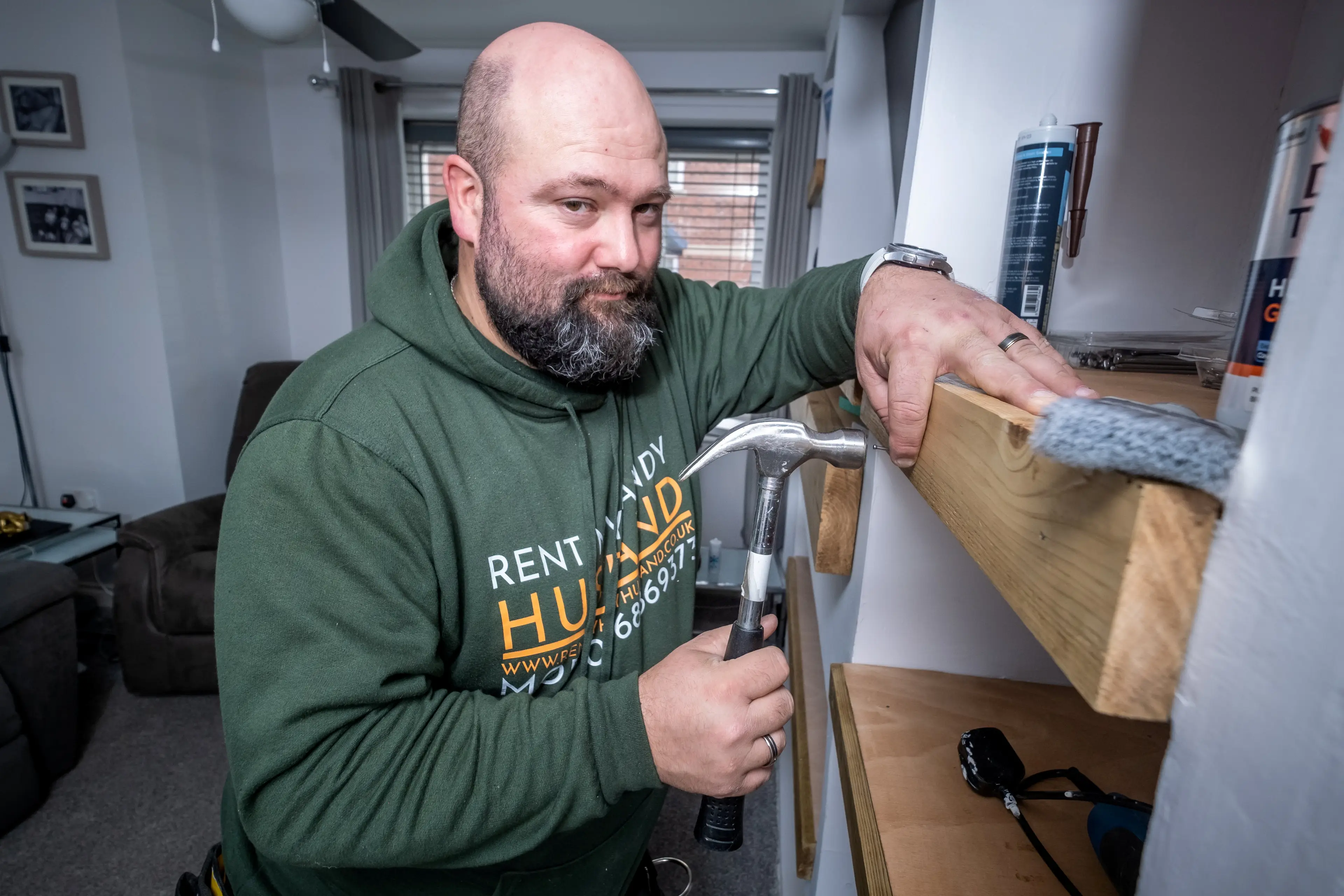 After jokingly posting an ad boasting about her husband's’ DIY skills, which includes painting, decorating, tiling and carpet laying skills, James has been booked ever since.