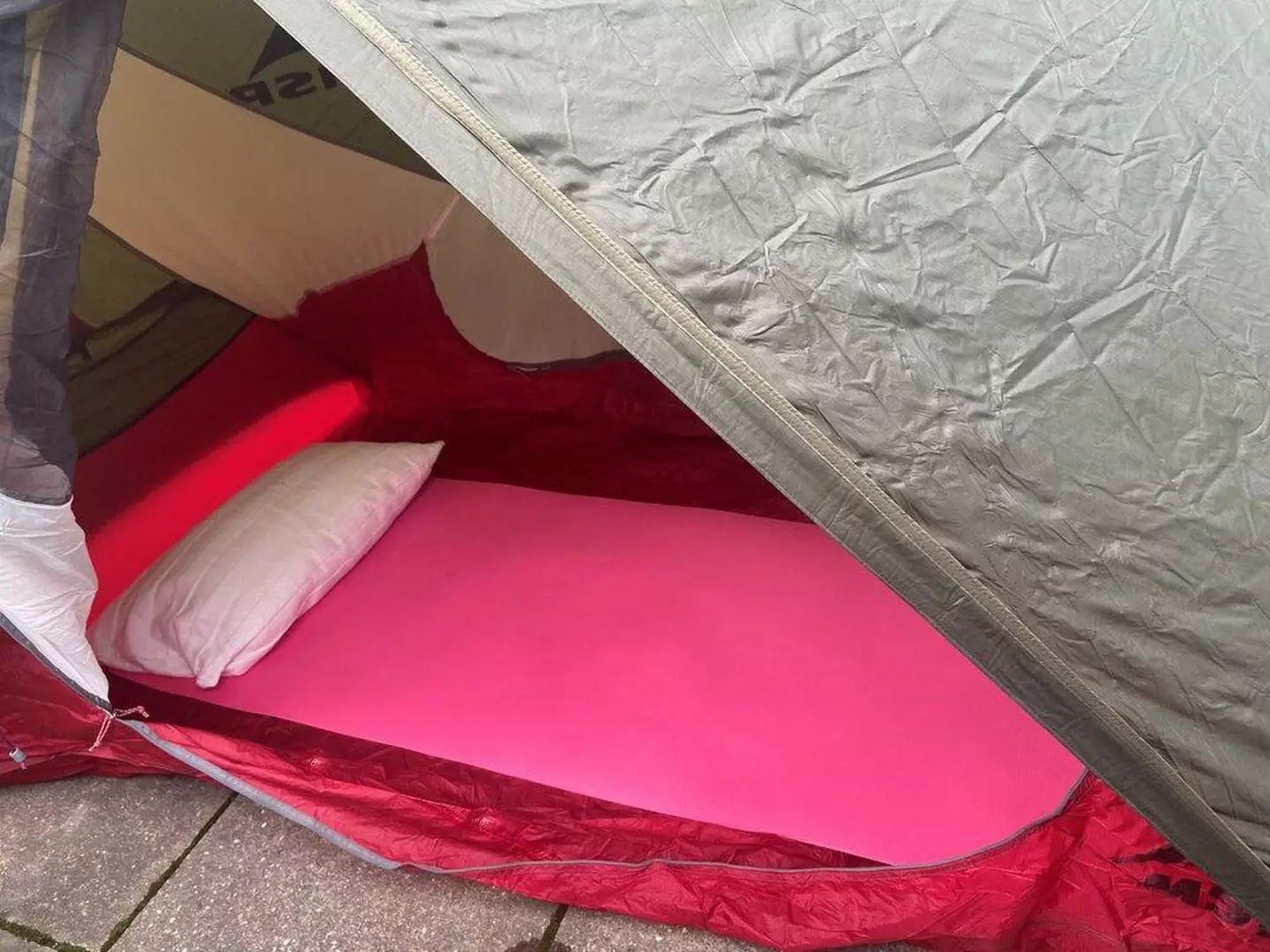 The tent is waterproof and is set up on an insulating mat, and mattresses and pillows are also available.