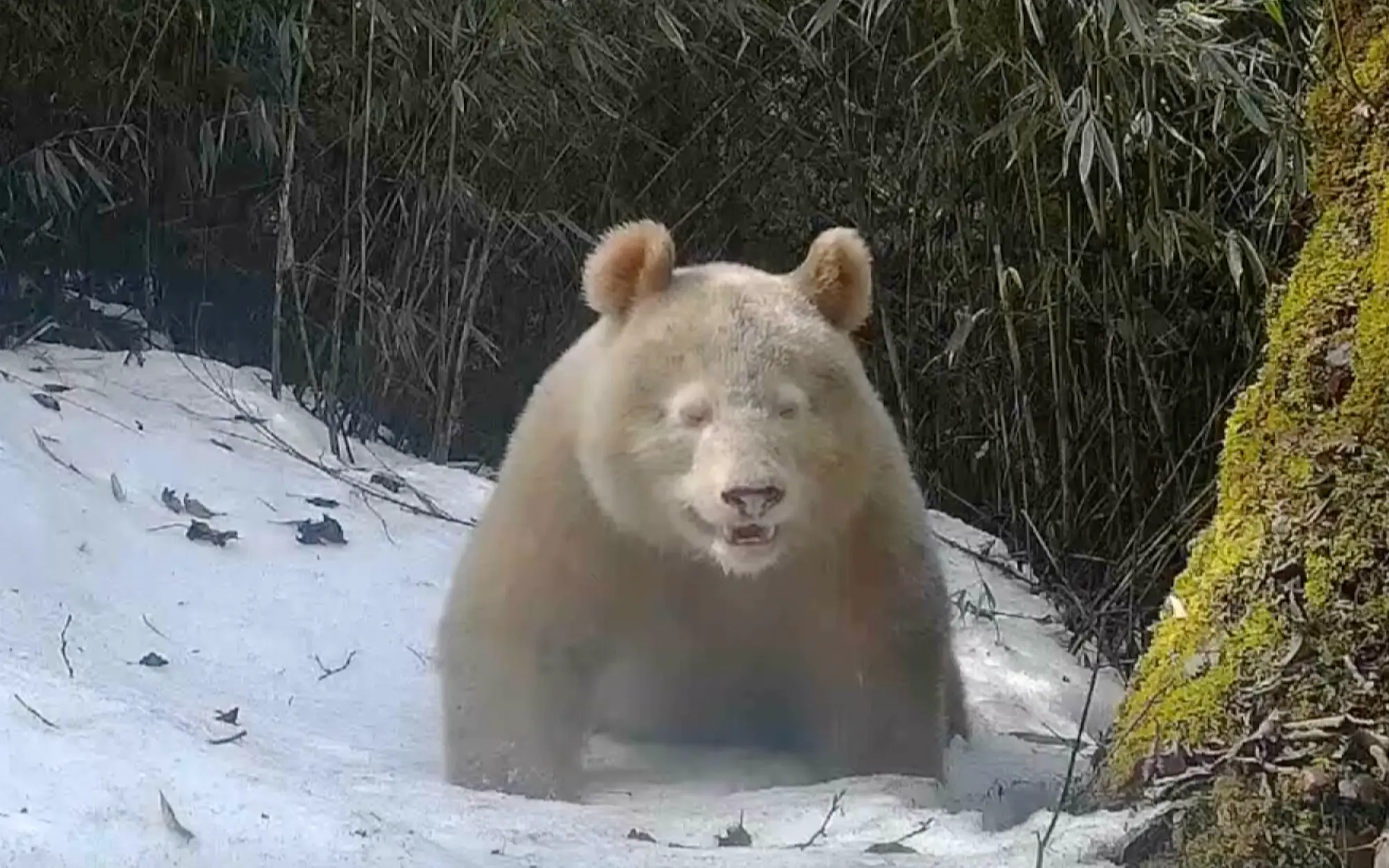 "The cub in the footage is about one to two years old, and the all-white panda is nearly the size of an adult," he told The Straits Times.