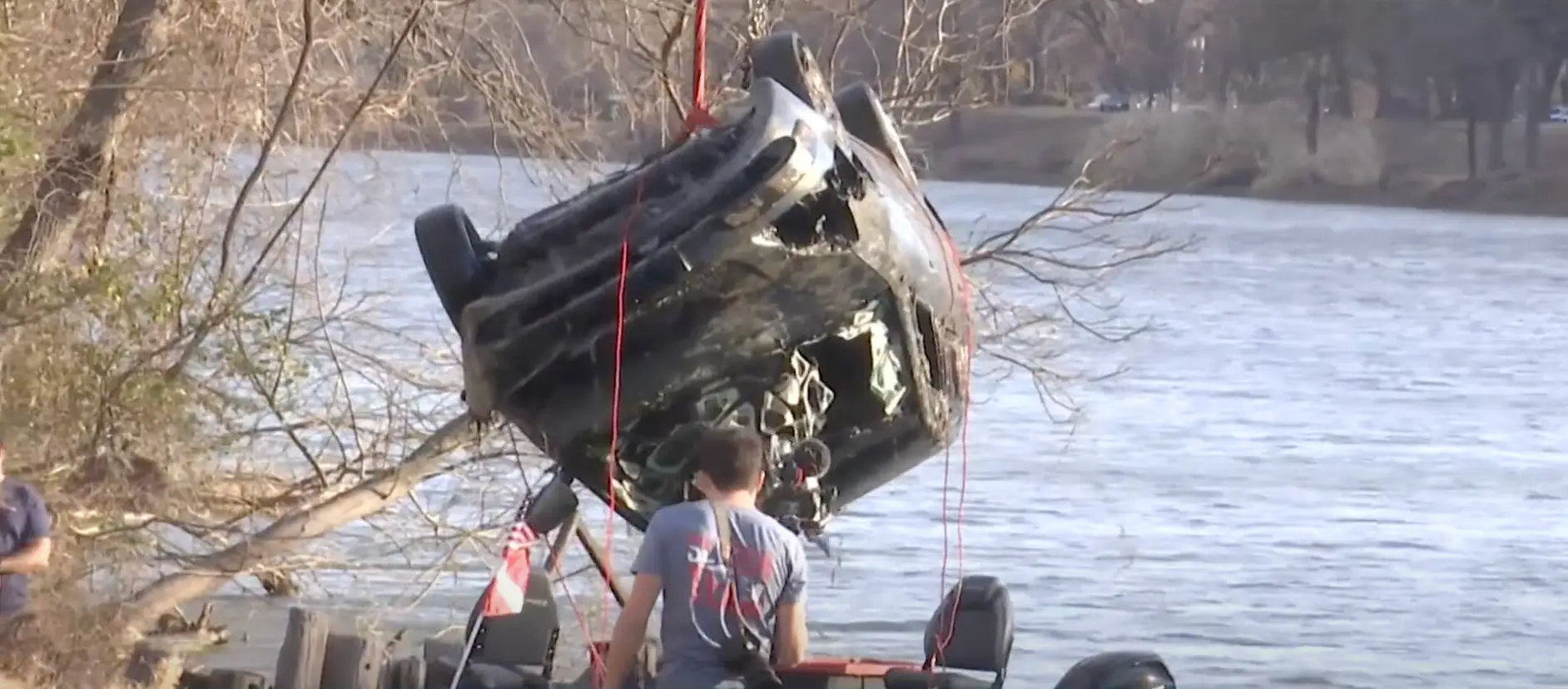They went on to add: "The vehicle was upside down, 55' from shore, 13' underwater.
