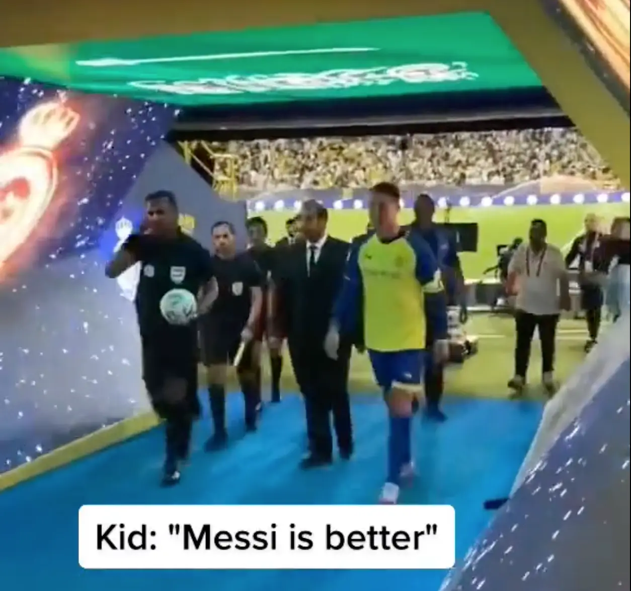 The heckler taunted the Portuguese star by declaring ‘Messi is better’ as the former Manchester United star as he walked down the tunnel.