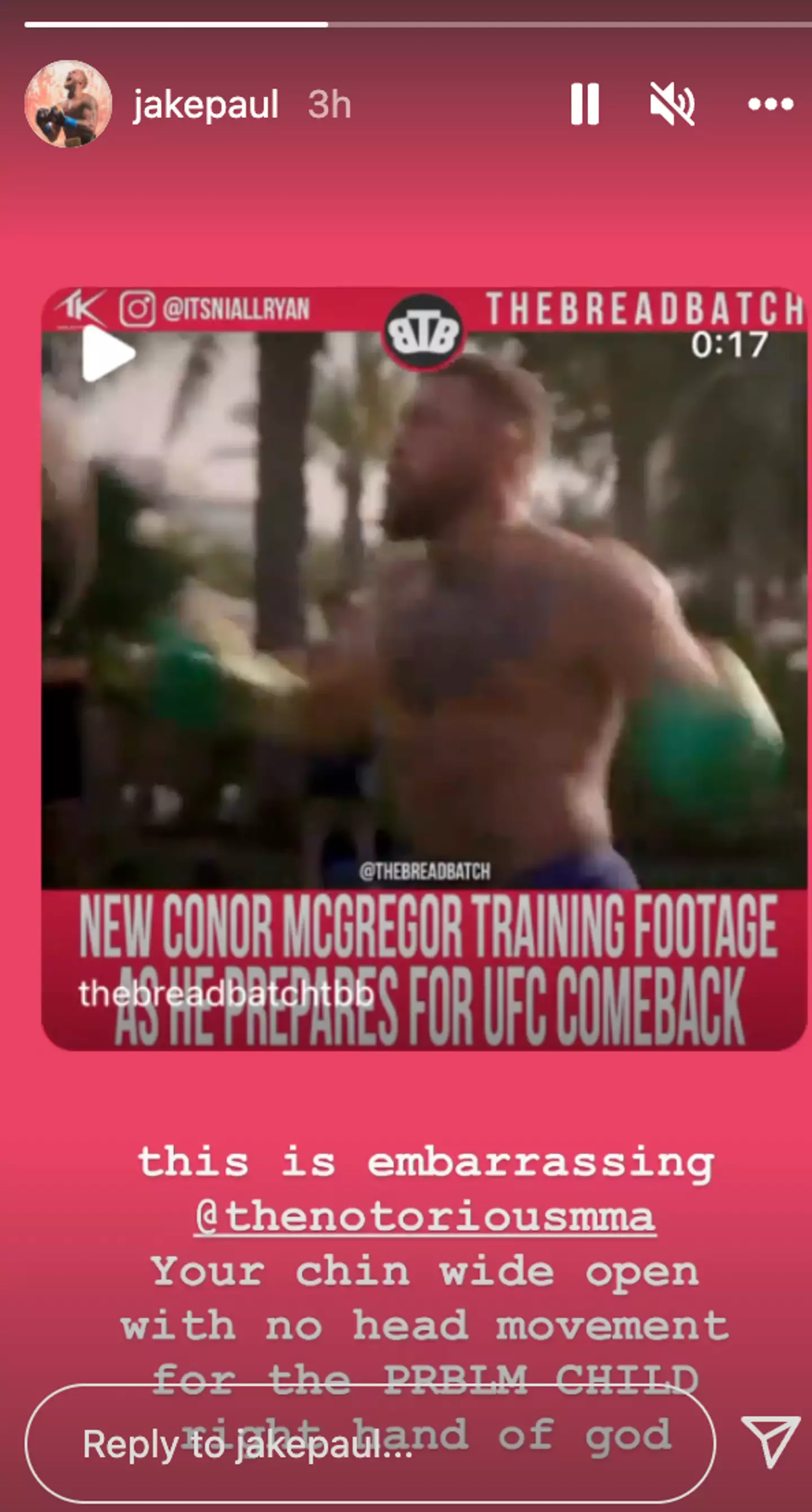 Jake Paul has taken aim at Conor McGregor, criticising a recent training clip the former UFC champ shared online. You can see the clip here: