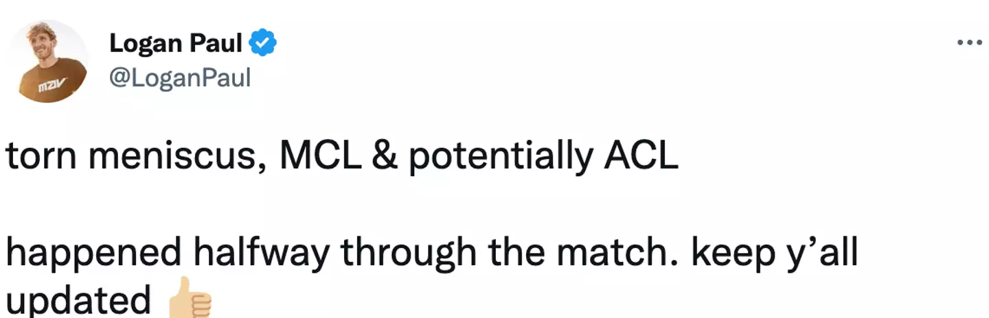 After the event wrapped, Logan took to social media to tell fans he had suffered a pretty serious injury during the fight.