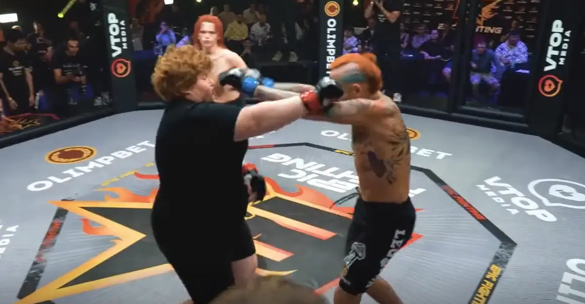 Just last month, a fan jumped into an MMA cage and attempted to stop the bizarre mixed-gender encounter between female model Sasha Mamaha and male pornstar Alexnader Pistoletov.