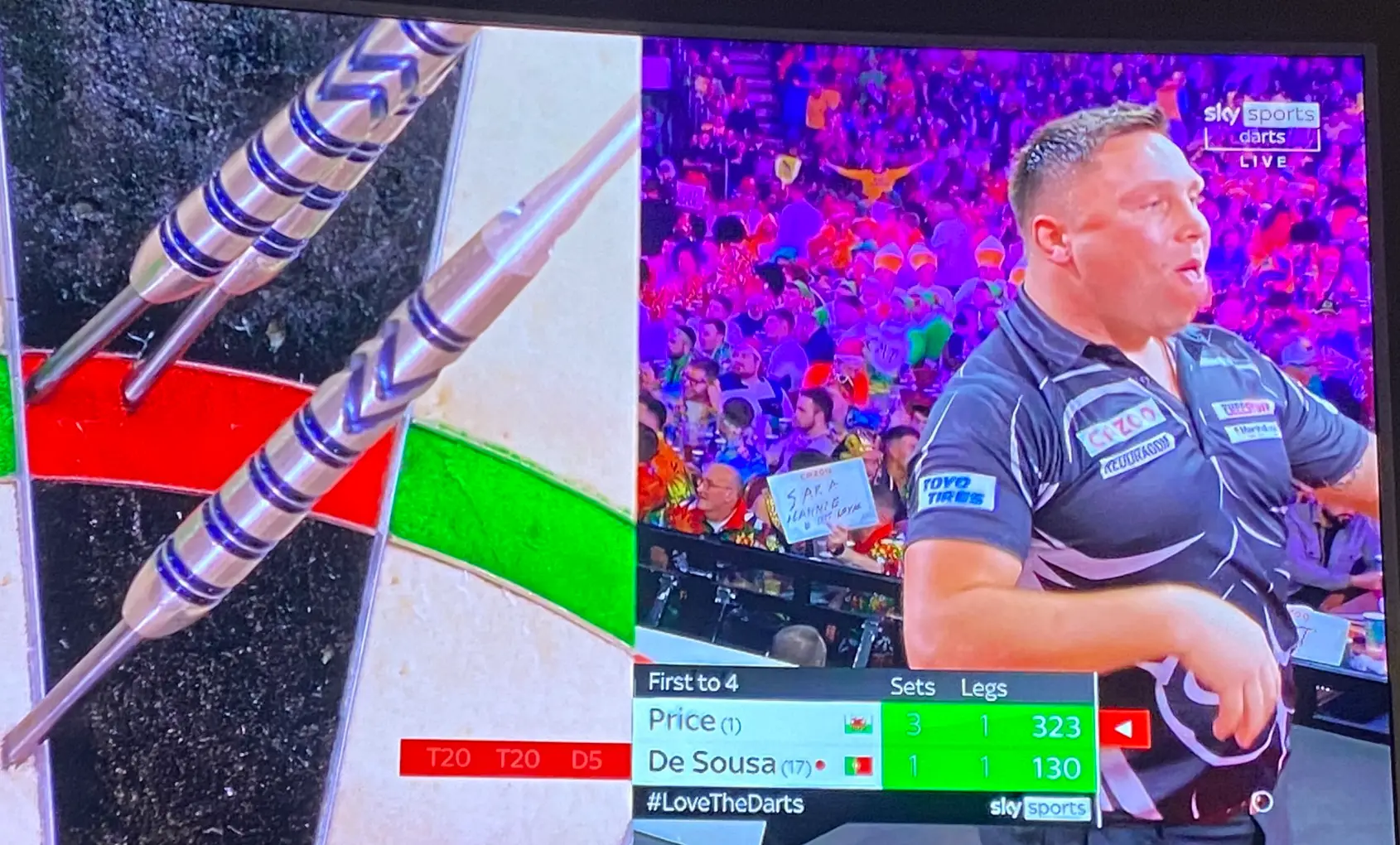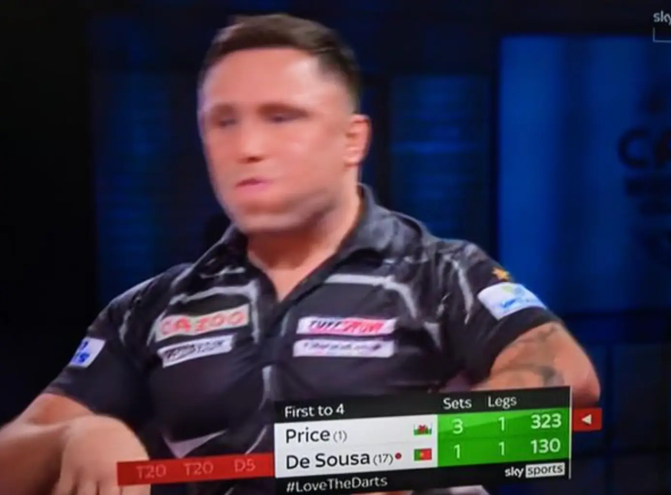 Sky Sports were forced to apologise over a gesture made by Gerwyn Price during his last-16 match at the PDC World Darts Championship.