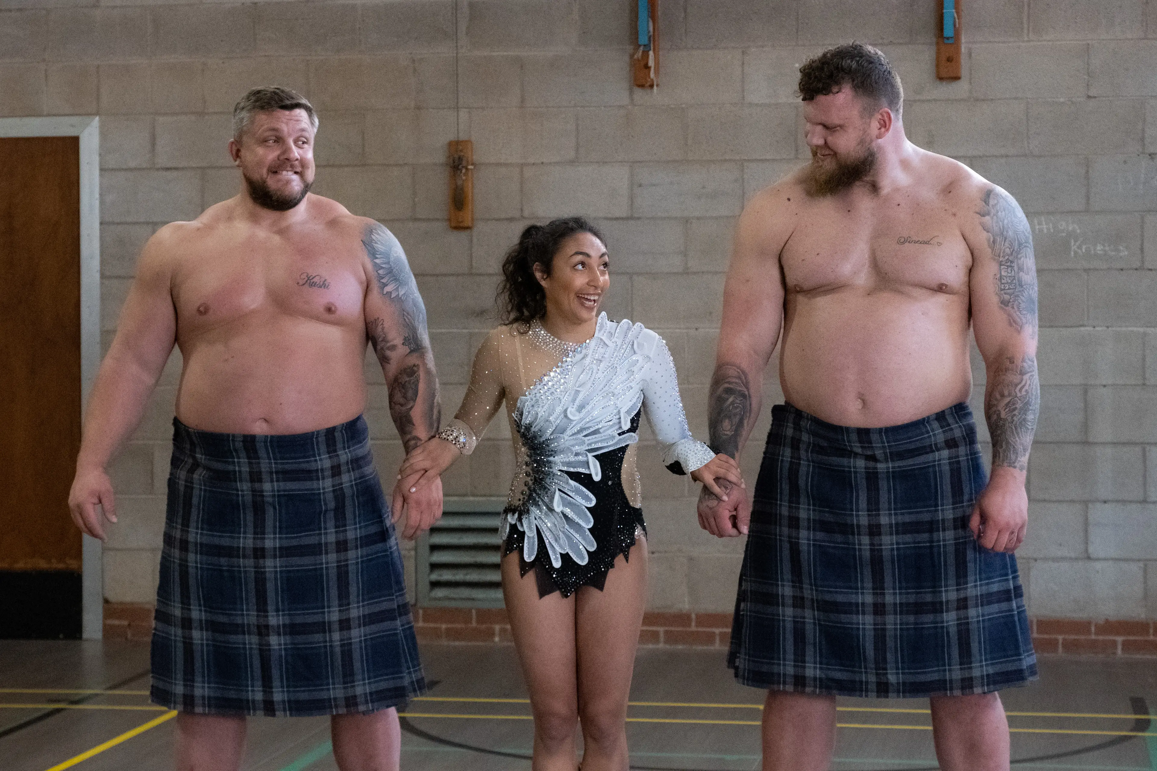 But, the brothers aren’t men who shy away from a challenge. Ribbon by ribbon, forward roll by forward roll, the pair get to grips with learning new skills and unearth some new talents. They even immerse themselves into the glitz and glamour of rhythmic gymnastics by donning tartan kilts and floating across the room with a ribbon and balletic grace.