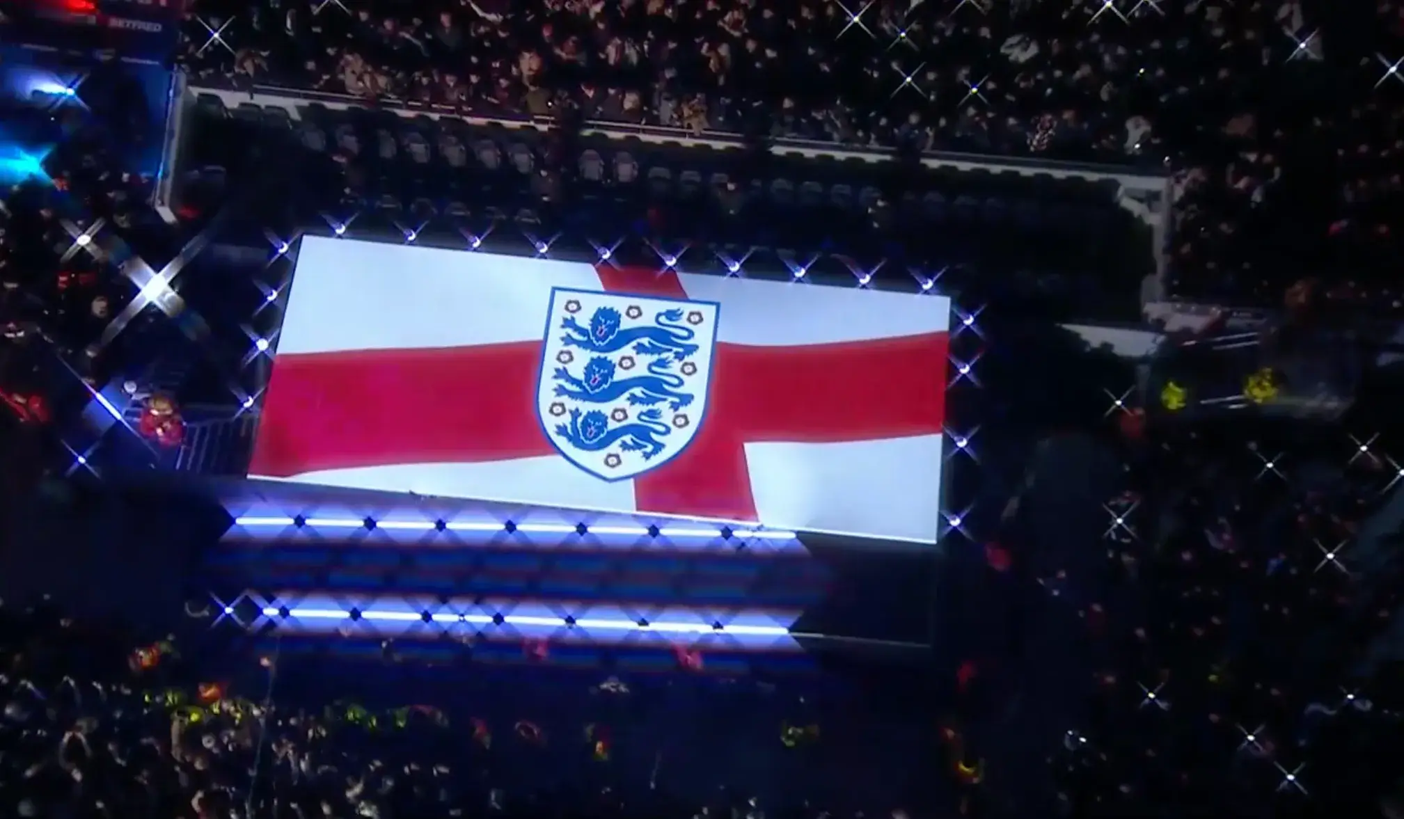 'Three Lions' then burst onto the speakers, as a nod to England's ongoing efforts in the World Cup in Qatar.