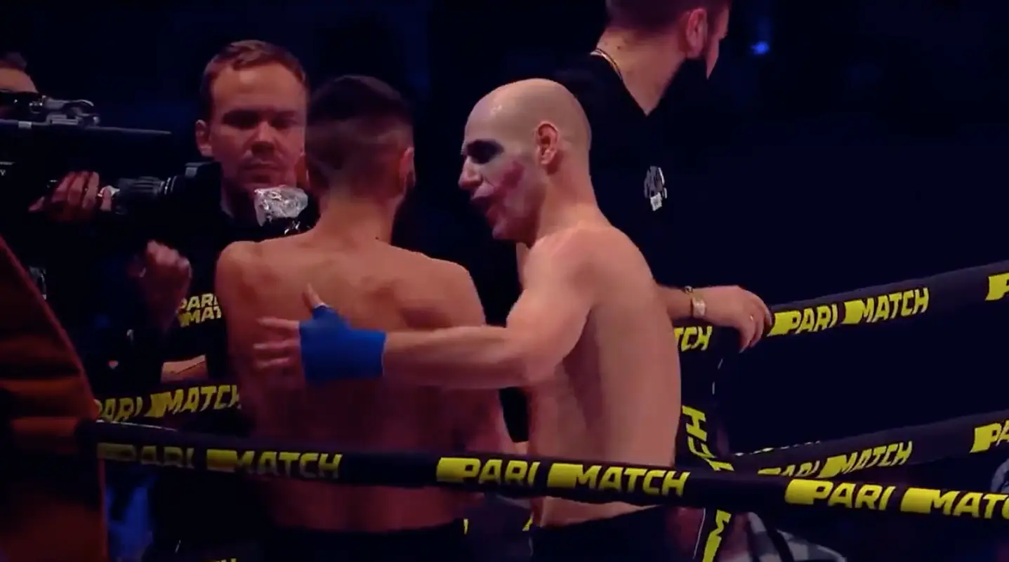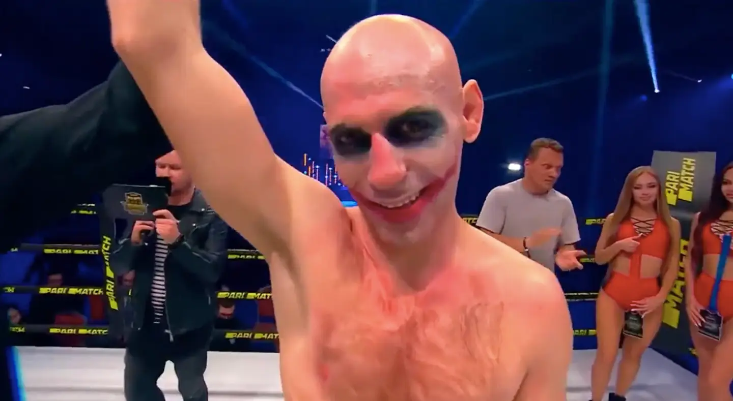 A Ukrainian boxer donned terrifying 'Joker' makeup before knocking out his opponent in a bare-knuckle fight.